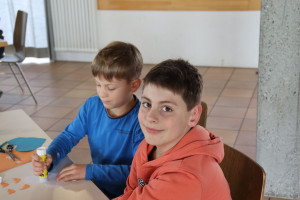 Verteilt auf drei Stationen hatten die Jugendleiter frühlingshafte Bastelideen vorbereitet: So konnte man z.B. einen lustigen Frosch basteln, bei dem man durch Pusten die Zunge rausstrecken lassen kann, des Weiteren eine schöne Muttertags- oder Vatertags-Karte kunstvoll gestalten oder eine Ostereierklammer mit einem versteckten Küken kreieren. Beim gemeinsamen Abschlussbasteln eines Osterhasen stellten die Teilnehmer schnell fest, dass bei so viel Kreativität und Spaß die Zeit viel zu schnell verflog und sie gerne noch weiter gebastelt hätten.